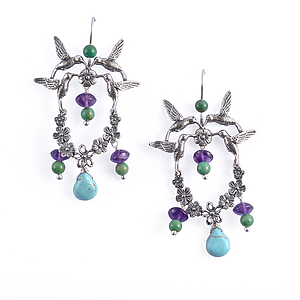 Aretes Picaflor con corona flores